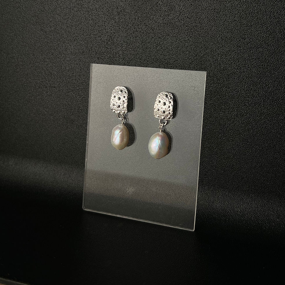Øredobbene merket håndlaget er er laget i ulike materiale med strukturer og former inspirert av naturen. Kombinasjonen med steiner og perler gir øredobbene en diskré eleganse som blir lagt merke til. Hvert par er unikt og finnes bare i et eksemplar.